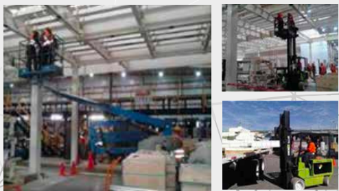 Instalación de equipos (tuberías de aire comprimido y uso general, bandas transportadoras con desviador, elevadores). Área de “Picking By Light” en planta Gamesa Celaya.